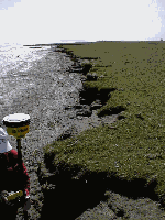 Von November 1998 bis September 1999 wurden insgesamt ca. 22 km Ufer- oder Vegetationsabbruchkanten vermessen. Abbruchkanten sind im Bereich des WSA Hamburg an vielen Stellen in Höhen von 30 - 180 cm anzutreffen. Ein Beispiel einer solchen Abbruchkante zeigt Abbildung II.2.5.3-1.