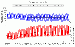 In den Abbildungen II.4.3.2-5 bis II.4.3.2-8 werden exemplarisch die gemessenen Wasserstands- und Strömungsverhältnisse an der Station Bunthaus-Norderelbe für das gesamte Kalenderjahr 2000 gezeigt. Die deutliche Zunahme der (mit negativem Vorzeichen versehenen) Ebbstromgeschwindigkeiten im März und April spiegelt die hohen Oberwasserabflüsse beim Frühjahrshochwasser wider. Unabhängig davon lassen sich aus dem dargestellten Jahresgang keine signifikanten Trends erkennen, die auf eine (vertiefungsbedingte) Veränderung der Strömungsverhältnisse in diesem Elbanschnitt hindeuten.