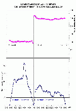Mit Hilfe der Darstellungen in der Abbildung II.1.3.2-8 "Einlaufende Tidewelle am 23.12.2000 " lassen sich die Zeitpunkte der Scheitelwasserstände an den Strömungsmesserpositionen recht genau bestimmen. Aus beiden Zeiten - Kenterpunkt und Scheitelwasserstand - werden die Kenterpunktverschiebungen bestimmt. Die folgende Tabelle fasst Scheitelpunkte, Kenterpunkte und Verschiebung zusammen.