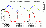 In Abbildung II.4.3.2-9 wird der Versuch unternommen, die zeitliche Entwicklung der Strömungsverhältnisse im Hinblick auf mögliche (ausbaubedingte) Veränderungen darzustellen. Für die Jahre 1999 und 2000 wurden für die Messposition Bunthaus-Norderelbe zwei Zeiträume mit nahezu identischen Wasserstandsverläufen und Oberwasserverhältnissen ausgewählt (Zeitraum 1999: 16.08. - 18.08., Zeitraum 2000: 17.08. - 19.08.; Oberwasserzufluss jeweils 300 m³/s). Ein Vergleich der Strömungsverhältnisse für diese Zeiträume ergibt keine Hinweise auf signifikante Veränderungen.